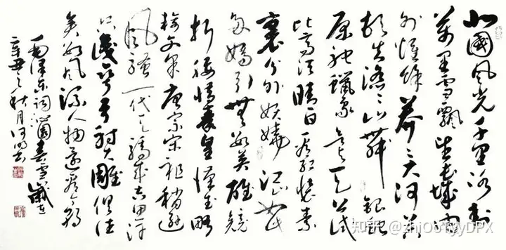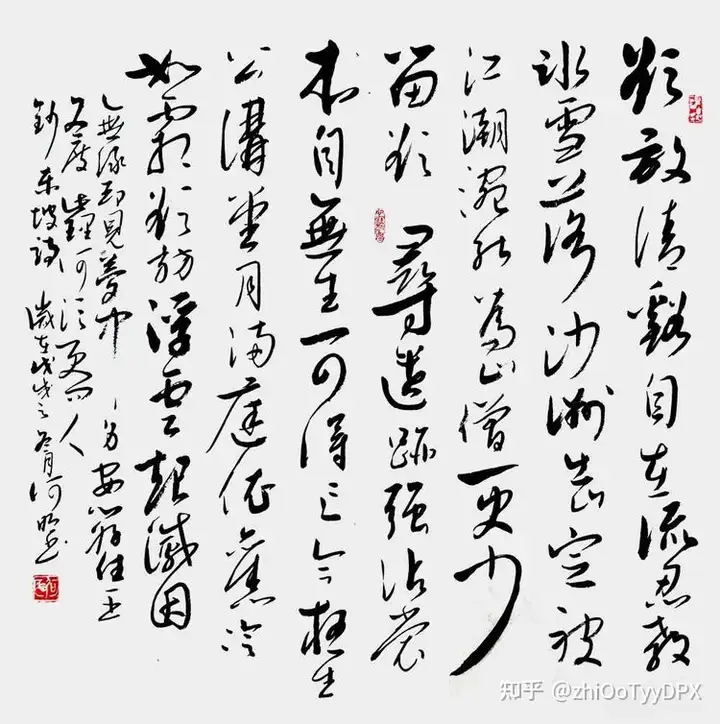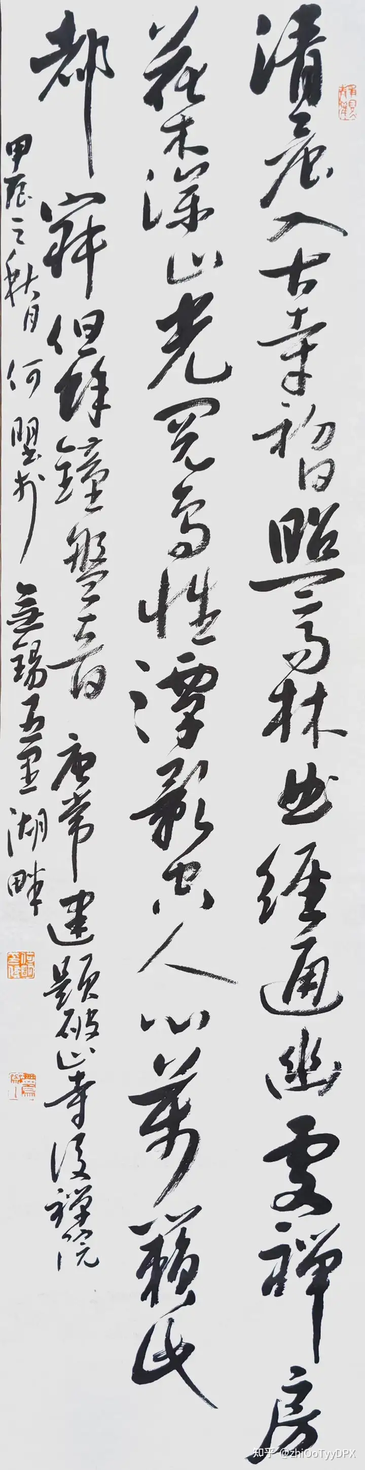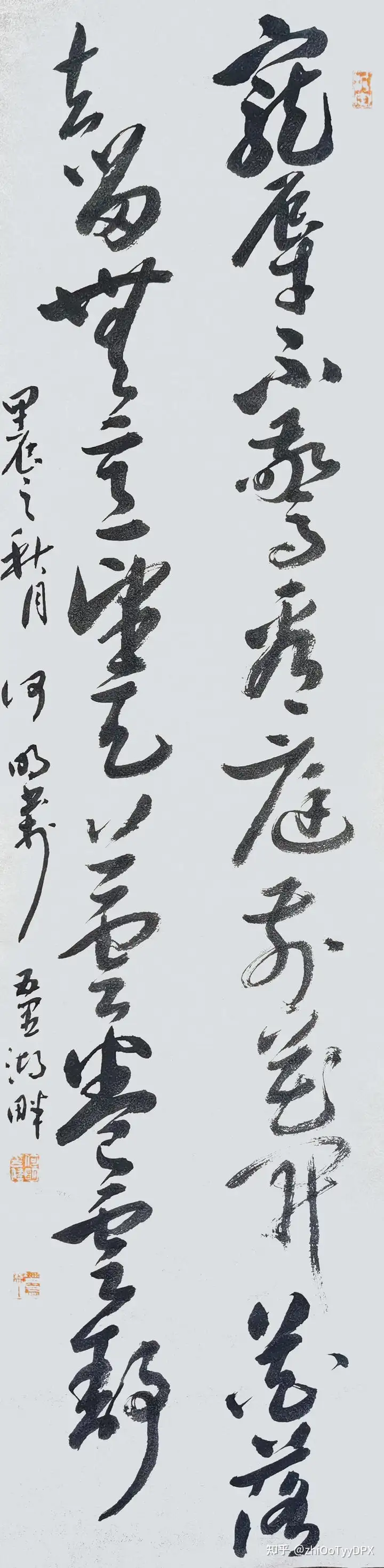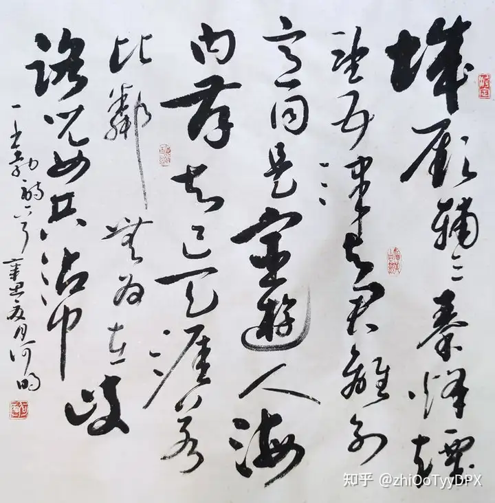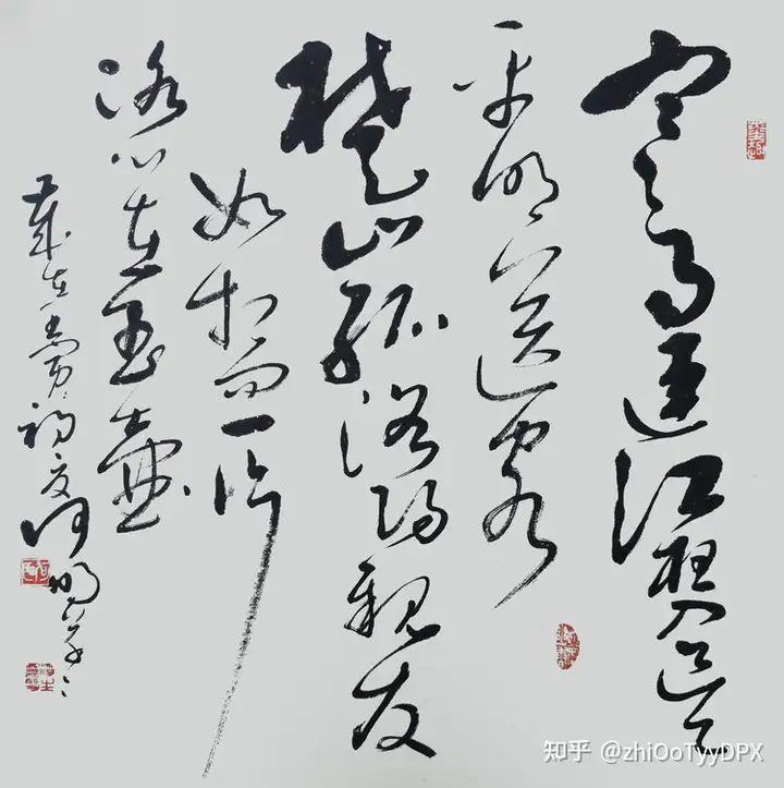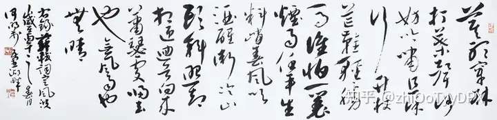 他格外注重书法作品的内在韵味与艺术质感,力求每一幅作品都耐人寻味、意境悠远。在创作中,他精准把控笔法、结构、墨色、章法的多变技巧,巧妙拿捏传统与创新、刚与柔、虚与实、快与慢、浓与淡等诸多对立又统一的关系,让笔墨变化万千、层次丰富,将书法艺术之美展现得淋漓尽致。其行草书作品,以晋代文人法帖为根基,兼具《兰亭序》的万千变化、米芾的秀丽清逸、《伯远帖》的天质自然,又吸纳怀素草书之瘦劲、张旭草书之丰腴,执笔运笔间,锋杪起伏多变,毫芒衄挫精妙,将笔墨的速度与力度完美融合,洒脱自如、气韵生动,全无江湖书体的粗糙随意,也无展览体的刻意造作,尽显文人书法的自然真趣。