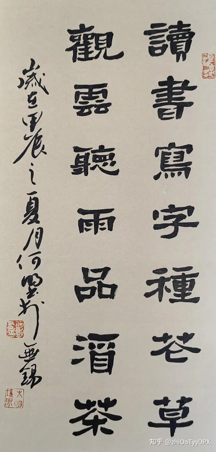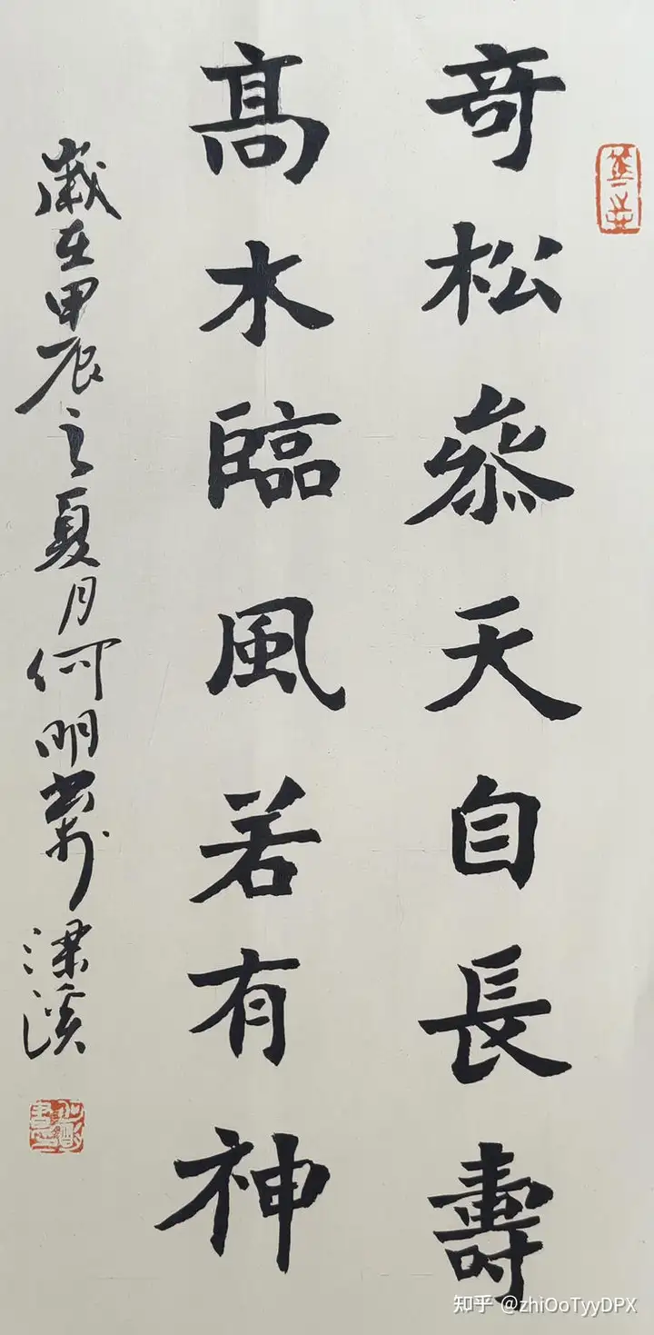 何明与书法的缘分,始于年少时心底萌生的纯粹热爱。自幼他便对笔墨文字有着别样的痴迷,上小学时,但凡看到字迹工整、笔锋俊秀的书写,便会满心欢喜地驻足揣摩,一笔一划跟着模仿,反复研习,哪怕是课间闲暇、放学路上,脑海里也全是汉字的笔画结构,久而久之,模仿得有模有样,字里行间早已透出几分灵气。到三年级时,他的书法功底已初见雏形,每至年关,便能提笔挥毫,为家里和邻里书写春联,稚嫩的笔触里,满是对书法的赤诚与热忱,也正是这份年少时的热爱,为他日后的书法之路埋下了希望的种子。步入中学,即便学业繁忙,为数不多的书法课成了他最期盼的时光,课堂上老师的每一笔板书,都被他视作最好的临摹范本,课上认真观摩,课后反复描摹,不放过每一个笔画的起收、每一处结构的布局,在点滴积累中,筑牢了书法学习的启蒙根基。
